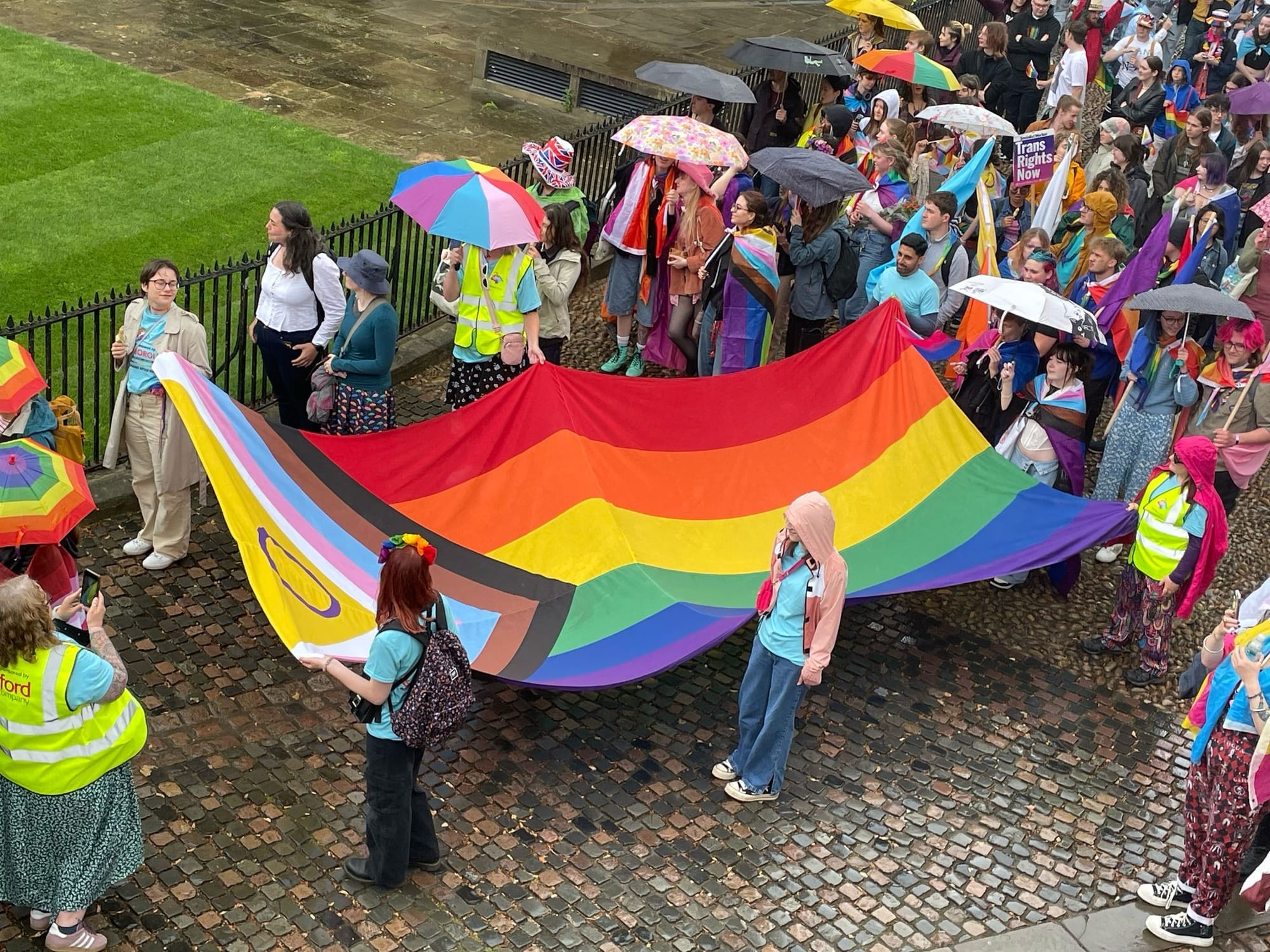 Around 1,000 people marched in the Oxford Pride parade. Political parties were banned wholesale from the parade, with the organisers saying: “We are witnessing a disturbing rollback in LGBTQIA+ rights, and trans people are bearing the brunt. This year, we stand with our trans community. We protest. We remember why Pride began.”