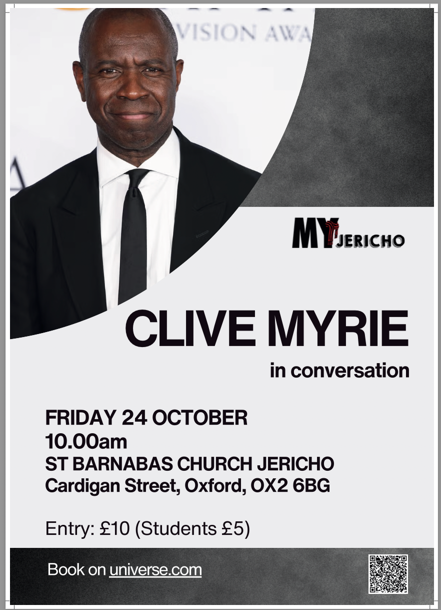 - Clive Myrie comes to Jericho. Fri 24 Oct, 10am, St Barnabas Church on Cardigan Street. Booking essential. One of the UK's best known television faces comes to Jericho.