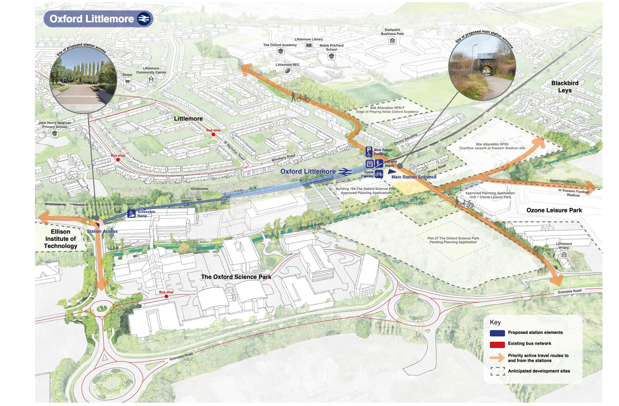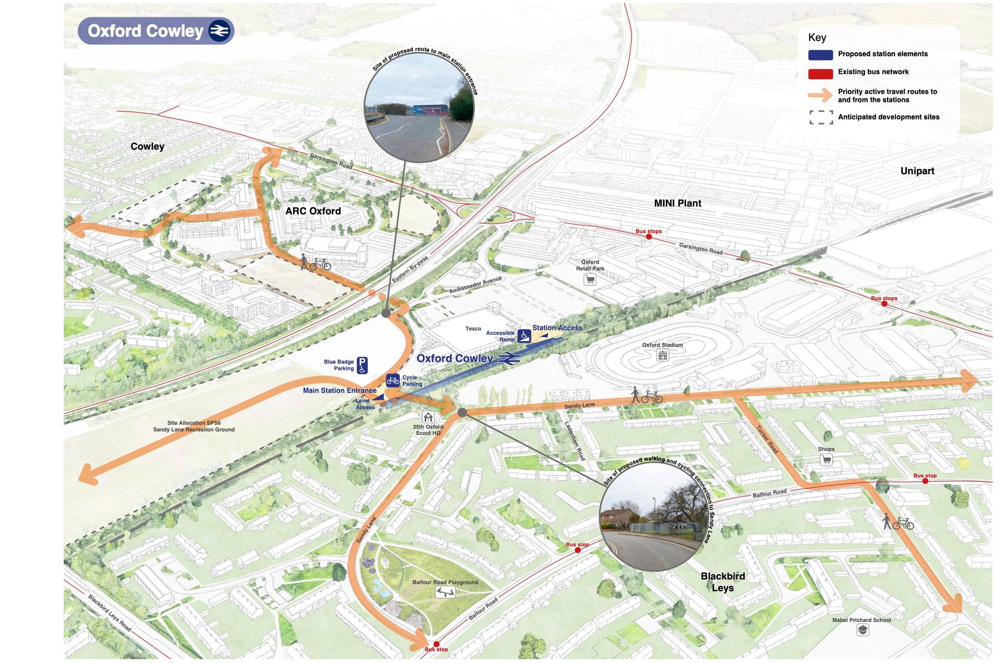 The site is sandwiched between Cowley itself and Blackbird Leys. ARC Oxford (formerly the Oxford Business Park) is just over the ring road, with a traffic-free underpass already in place. Sandy Lane Recreation Ground, adjacent to the station site, is envisaged for 120 new houses. And, of course, the Mini factory and adjacent Unipart HQ are not far away.