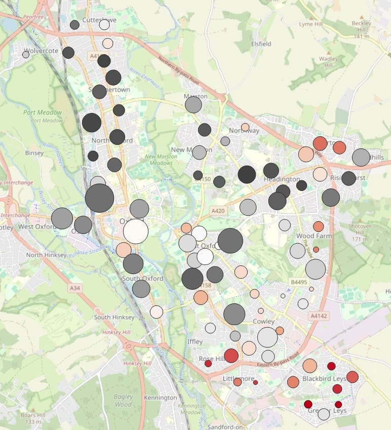 Meanwhile, areas of East Oxford towards the Plain, Florence Park, and Abingdon Road have gentrified rapidly with their deprivation score plummeting – and while Barton still has significant deprivation, the figures suggest this has greatly improved over 10 years.
