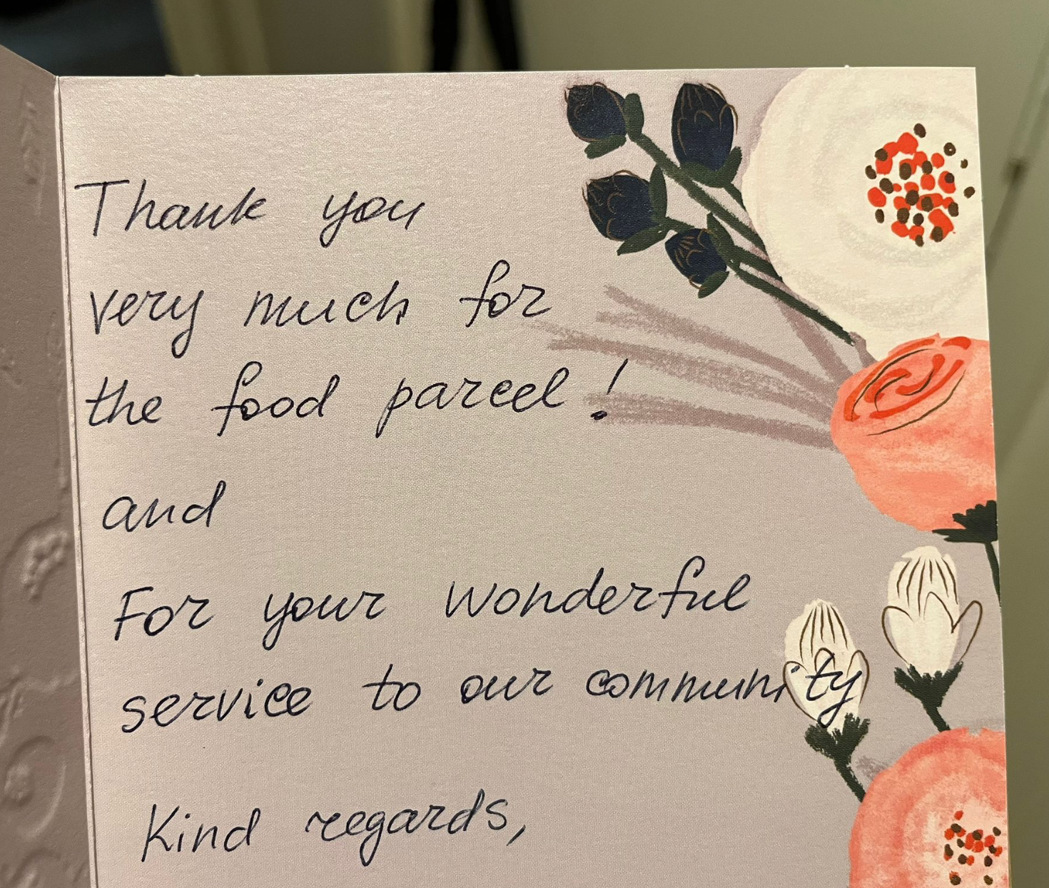 There are two main types of delivery. A bespoke weekly package provides a consistent, reliable supply of food, household items, toiletries and even baby supplies for new and expecting parents. Alongside this, an emergency service offers rapid, by-request delivery. Both the speed of the emergency service and the predictability of the regular delivery matters. Knowing that food will arrive consistently removes a major source of stress. As one person explained: “It really gave me breathing space… I was completely lost at the beginning, and this became a constant good thing in my life.”