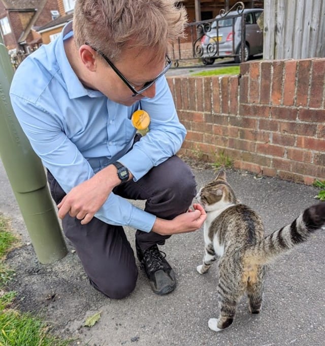 We don't believe Olly Glover has a pet, but we are reliably informed he is easily distracted by Liberal Demo-cats when on the campaign trail.