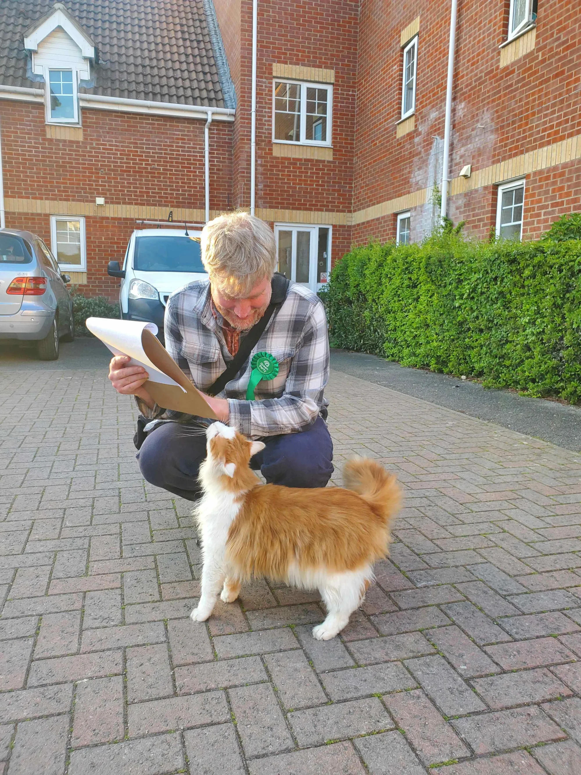 James Taylor (Labour) is the elected councillor for Headington Hill & Northway, and is up for re-election. This is his family dog, Pepper, and he’s been talking to cats whilst delivering for Labour in nearby Lye Valley. James, that is. Not Pepper.