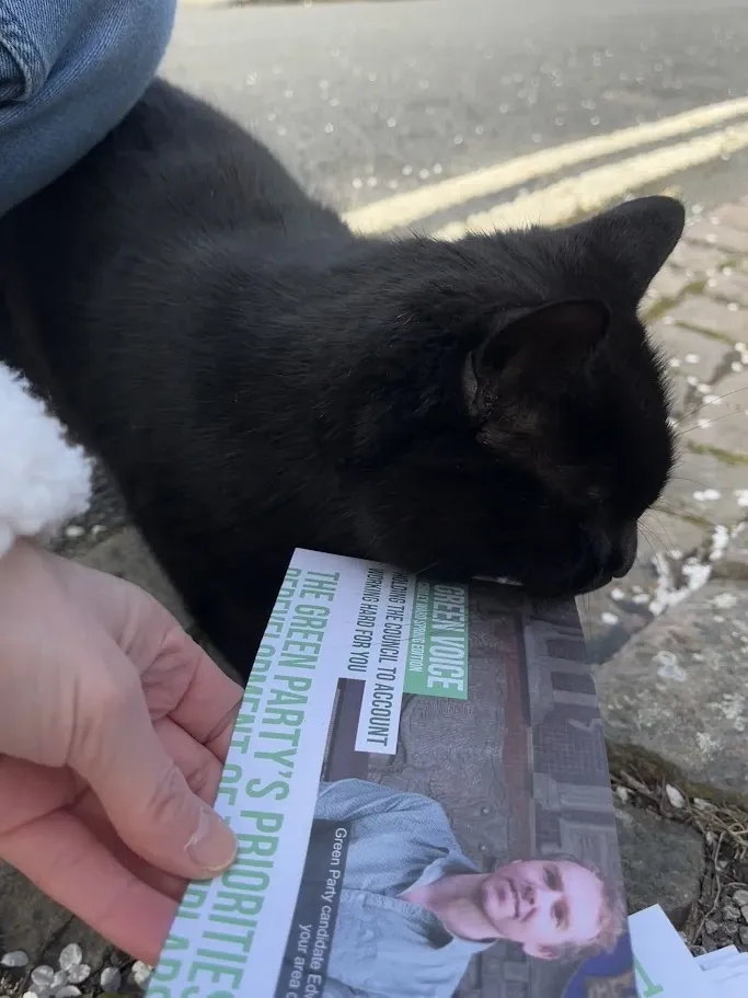 LibDem candidate Kai has two cats: this is the very beautiful (and apparently incredibly friendly) Iris. Kai's ‘Who can I vote for?’ statement says “He is a passionate advocate for safer streets, green spaces and boosting affordable housing provision.” We think his cat wrote it.