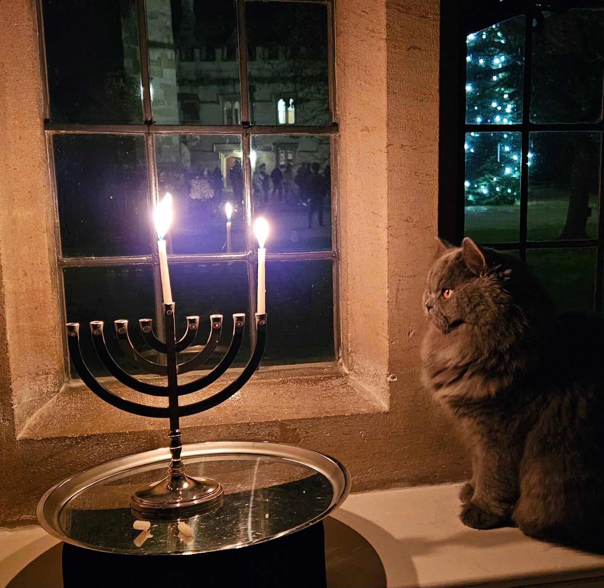 Regular readers will know we occasionally post updates from Magdalen College's favourite furry fellow. We couldn’t resist this one. It is Hanukkah. It seems appropriate that the menorah is being lit at Magdalen, for this venerable college is built over the site of an early Jewish burial ground, established in 1190. The cemetery only remained at the site for just over 40 years; in 1231 Henry III gave the land to the Hospital of St John, and the Jewish community was forced to use an area across the road where the Lasker Rose Garden, just outside where the Botanic Garden stands today. Chag Sameach to all those who celebrate.