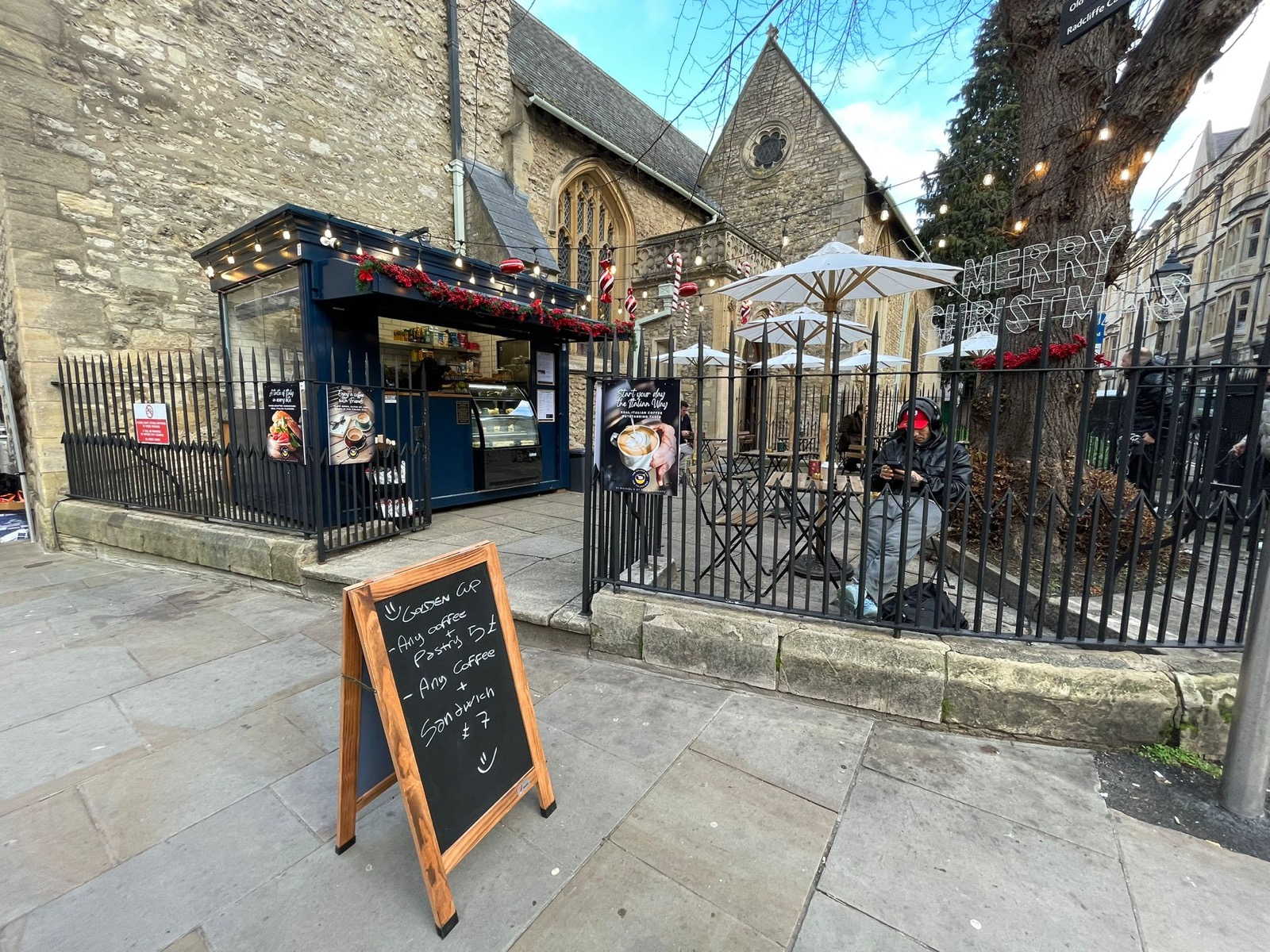 - At the other end of Cornmarket, the Golden Cup coffee booth has opened outside St Michael’s church. The site was previously occupied by AMT Coffee, the chain which started in Oxford but which collapsed in acrimony after a feud in the founding McCallum-Toppin family.