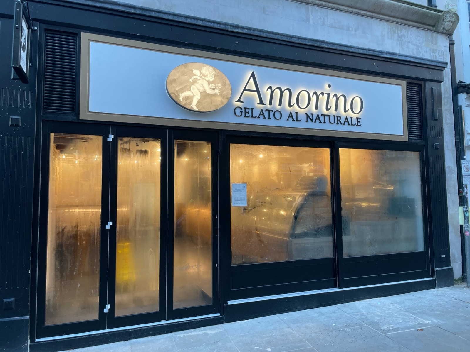 - Italian cafe Amorino opened on the same day, a few doors down. The cafe sells ice creams and sorbets, sundaes and milkshakes, gelato macarons, crepes and waffles, hot drinks, gelato cakes, and Italian pastries.