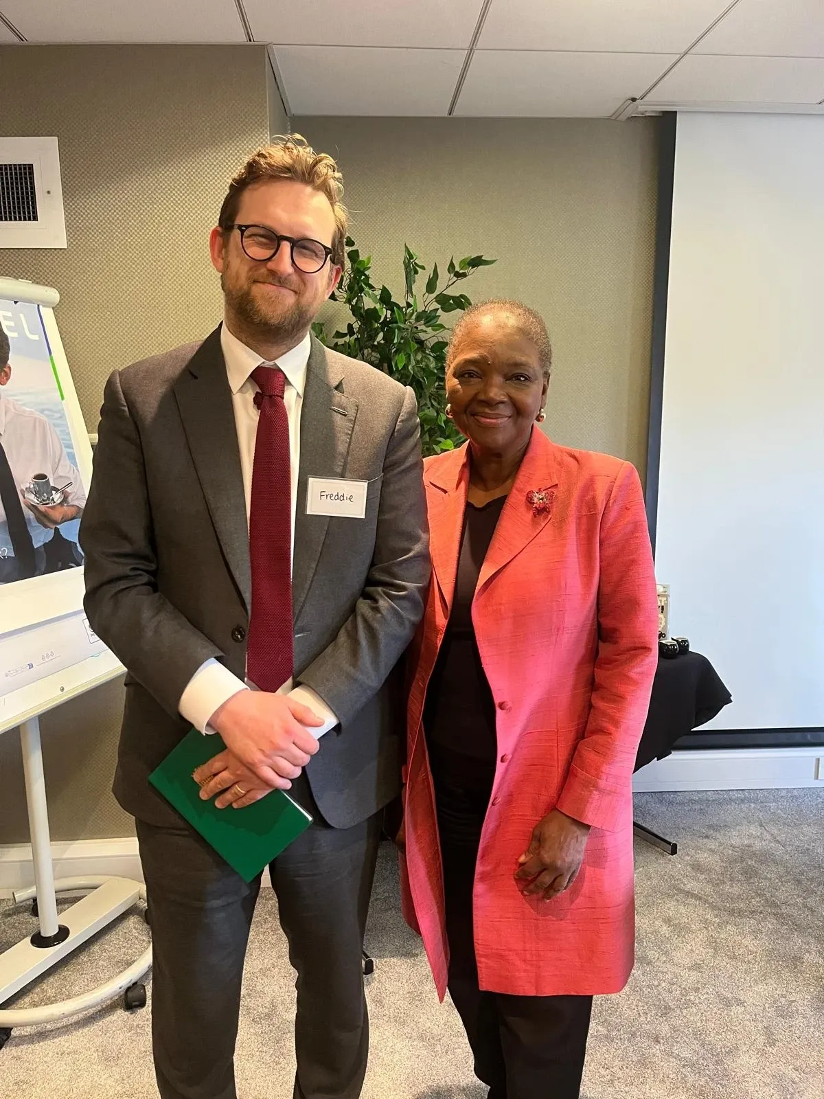 Freddie van Mierlo MP at Hobbs of Henley and, right, with Baroness Amos.