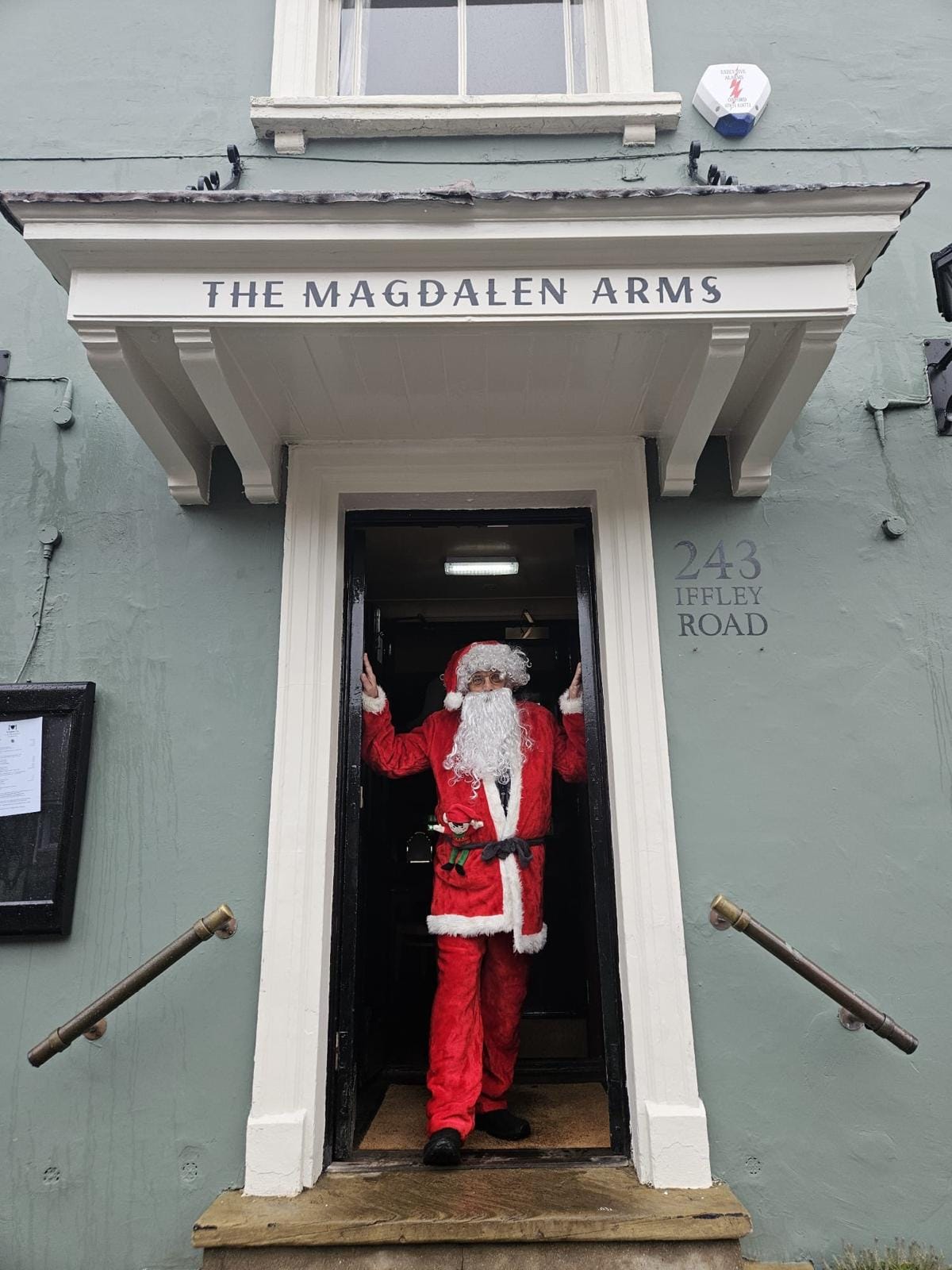 Green Party members meet (Roger Close); Santa visits Magdalen Road (and he's coming back on Saturday); the Adventurer pub as was (Google Street View).