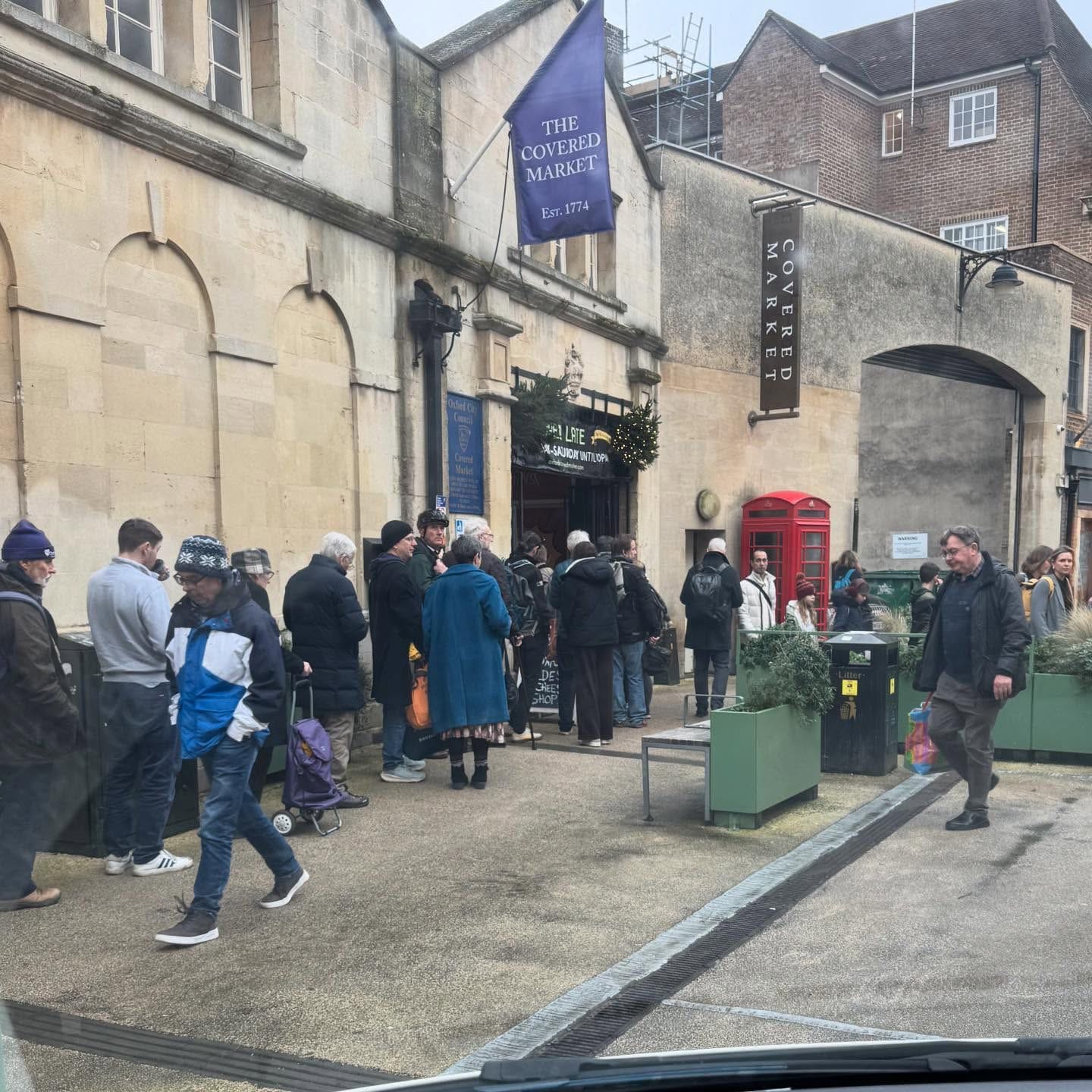 - Long queues formed in the Covered Market and along Market Street as shoppers waited patiently for the ingredients for their Christmas cheeseboard. The Oxford Cheese Company said it would be handing out mince pies and mulled wine on Tuesday to customers in the queue, to thank them for waiting.
