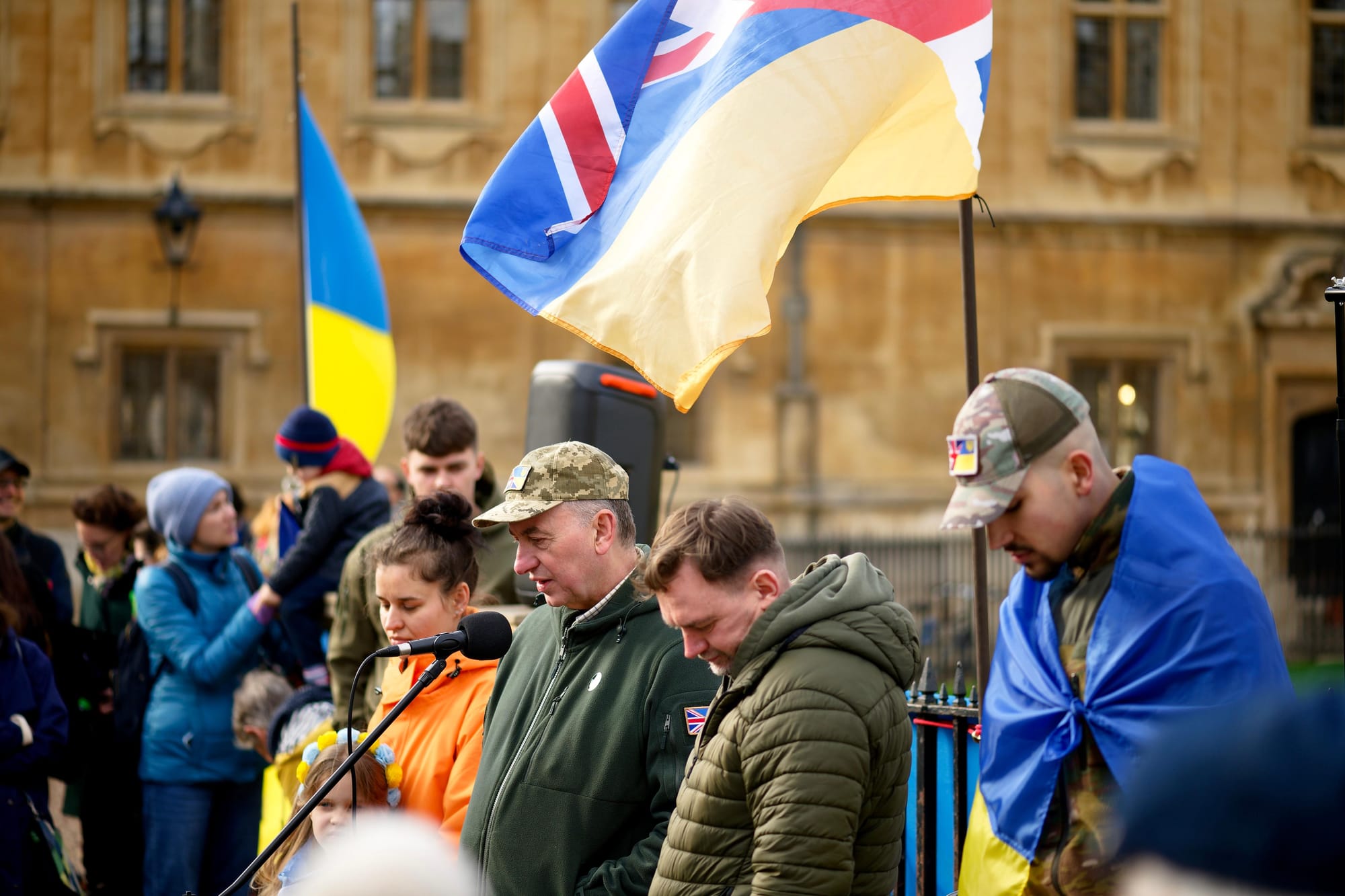 Speeches struck a sombre tone. Justin Robinson, who organised the rally, said that the response of the West towards the conflict had been a disappointment, apologising to Ukrainians present. Dasha Nepochatova, who took a week to drive out of Kyiv under fire, pointed out that Ukraine was fighting not just for peace, but for its country and intellectual heritage, saying the British school curriculum conflates Russia, Ukraine and the Soviet Union. Jaroslav, from Oxford Brookes Ukrainian Society, whose father has been injured defending Ukraine, said that ordinary people have become soldiers to defend themselves and Europe – yet life continues in Ukraine because the country wants not just to survive, but to live free and enjoy living.