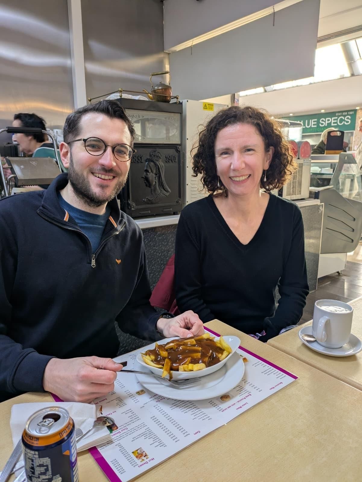 Classic Welsh Labour doorstep photo with the red and green. Does anyone know an Oxford cafe that serves chips, gravy and Irn Bru?