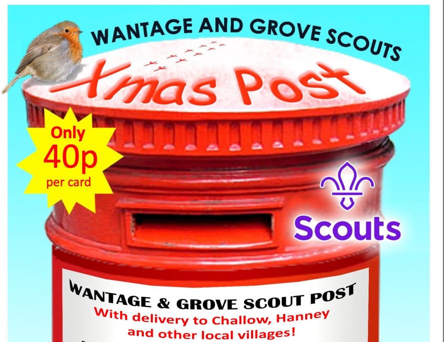 - Scouts in Wantage are running a volunteer Christmas post service for the 34th year, with delivery at 40p per card. Cards are hand-delivered by Scouts to Wantage, Grove and local villages. (Royal Mail’s first class stamps currently cost £1.70.)
