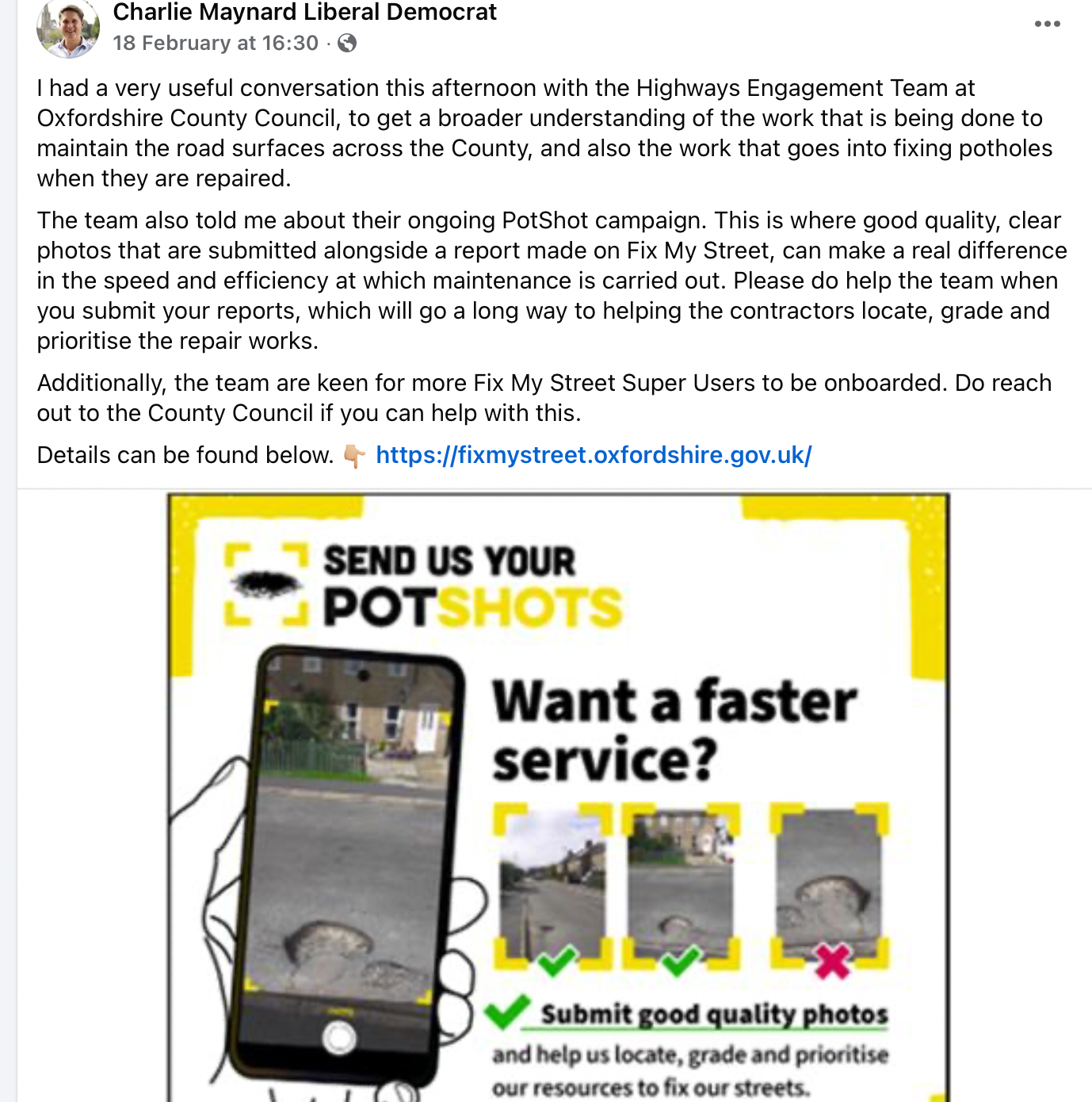 - A National Pothole Crisis (opinion piece by Nathan Ley, LibDem county councillor for Abingdon North)