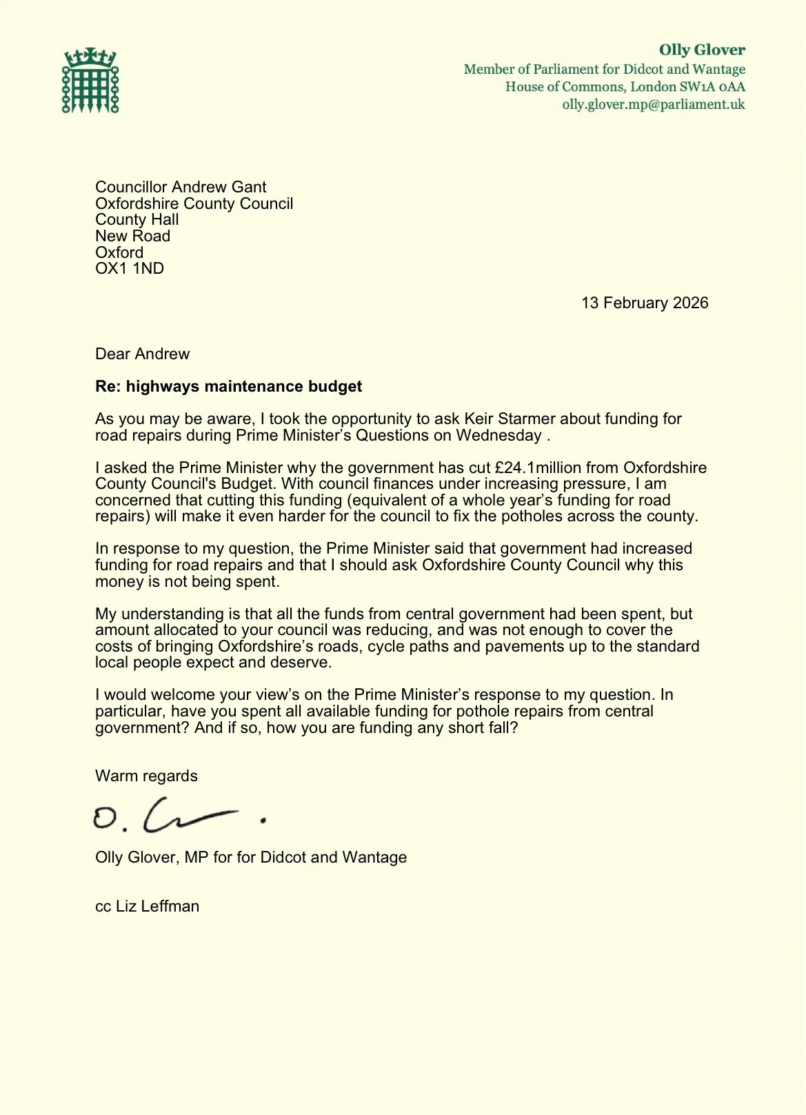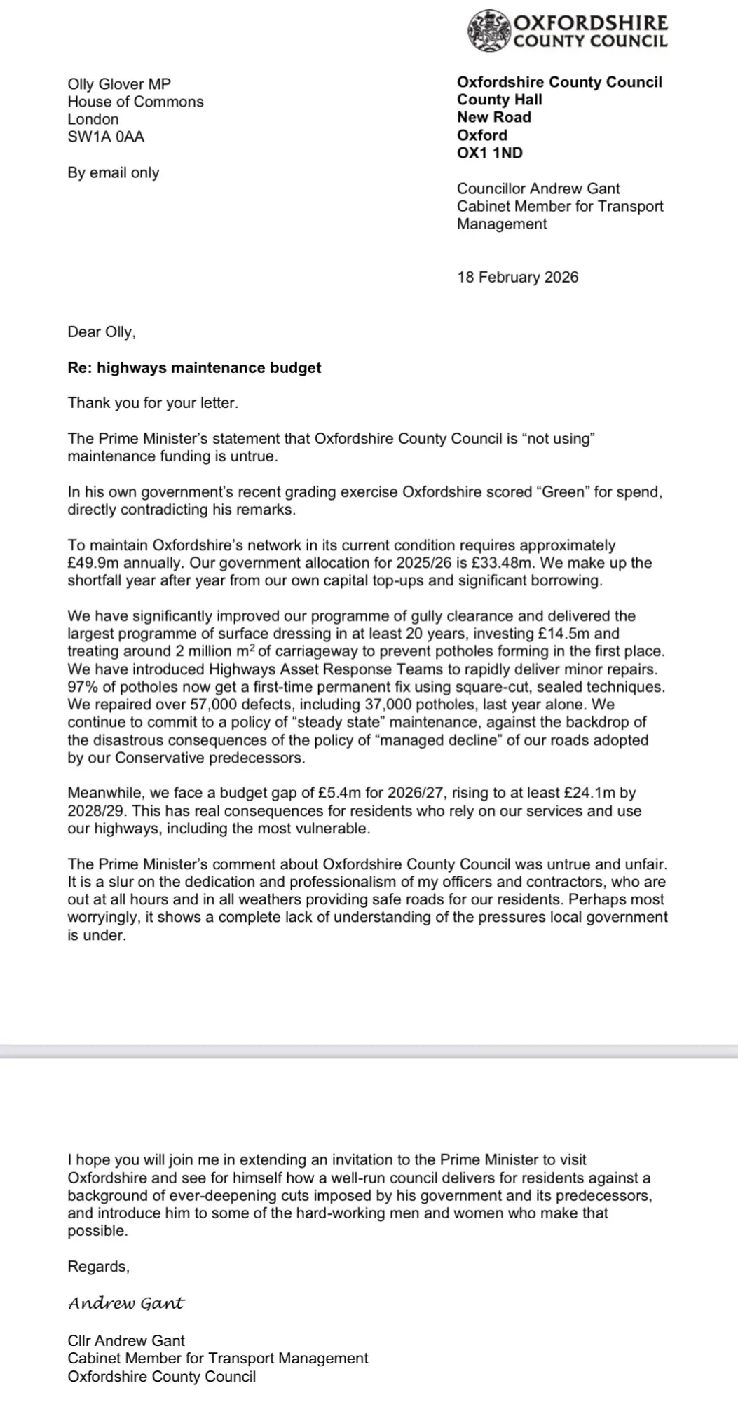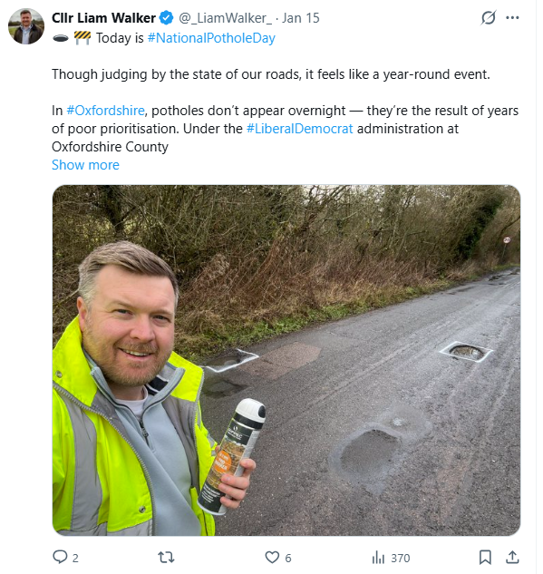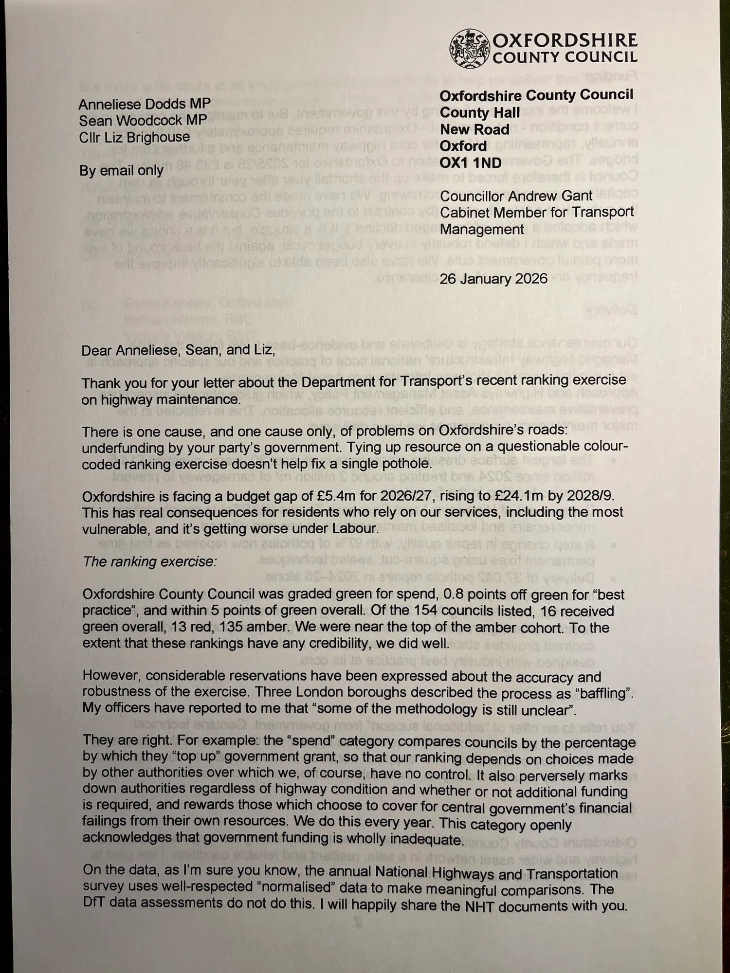 The Government recently published its local road maintenance ratings 2025 to 2026. Oxfordshire wasn't rated badly, getting an overall amber rating, and green for ‘Spend’ (because it spends more than it gets). But this was enough to put a large political football into play.