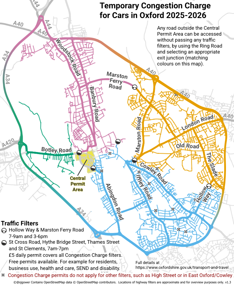 (* Almost all! Because of the Botley Road closure, you can’t get to the Westgate without passing a congestion charge point – that’s the ‘Central Permit Area’ above.)